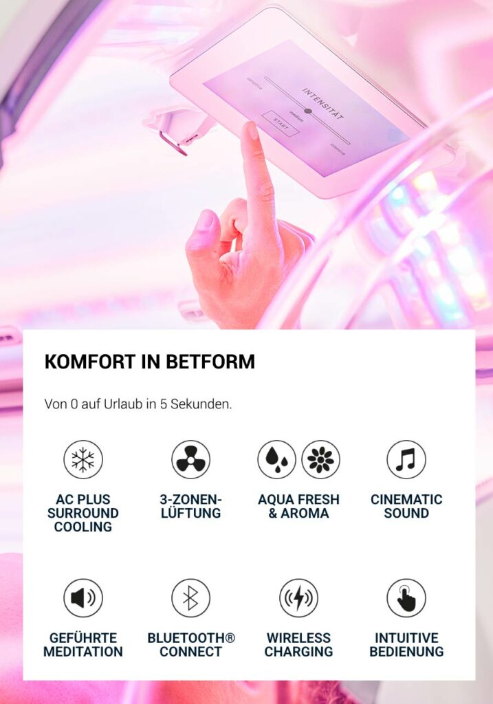 Das ikonische Edge Design setzt ein klares Statement: kraftvoll, markant und elegant. Prestige, neu definiert. Doch Prestige Edge überzeugt nicht nur durch die unverwechselbare Formensprache, sondern vereint innovatives Design, Premium Qualität, modernste UV-Technologie und höchsten Komfort.